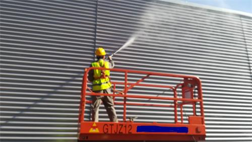 初秋時(shí)節(jié),天高云淡。我公司專業(yè)的清洗隊(duì)伍為客戶進(jìn)行清洗外墻。清洗隊(duì)伍經(jīng)過安全培訓(xùn),使用升降機(jī)等專業(yè)設(shè)備進(jìn)行工作。